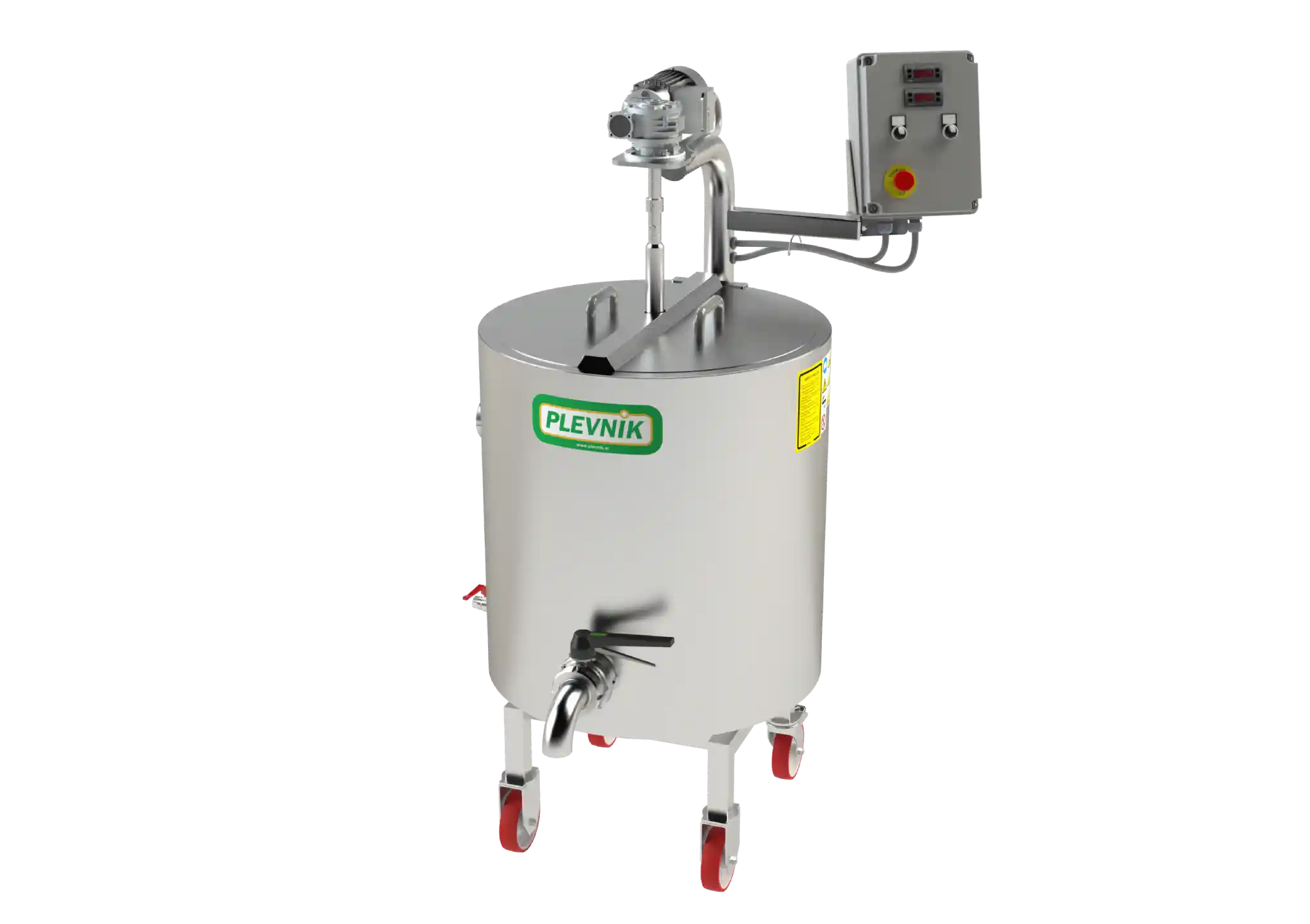 Er verfügt über einen isolierten Doppelmantel, welcher Thermoöl elektrisch bis auf 100°C erhitzt.