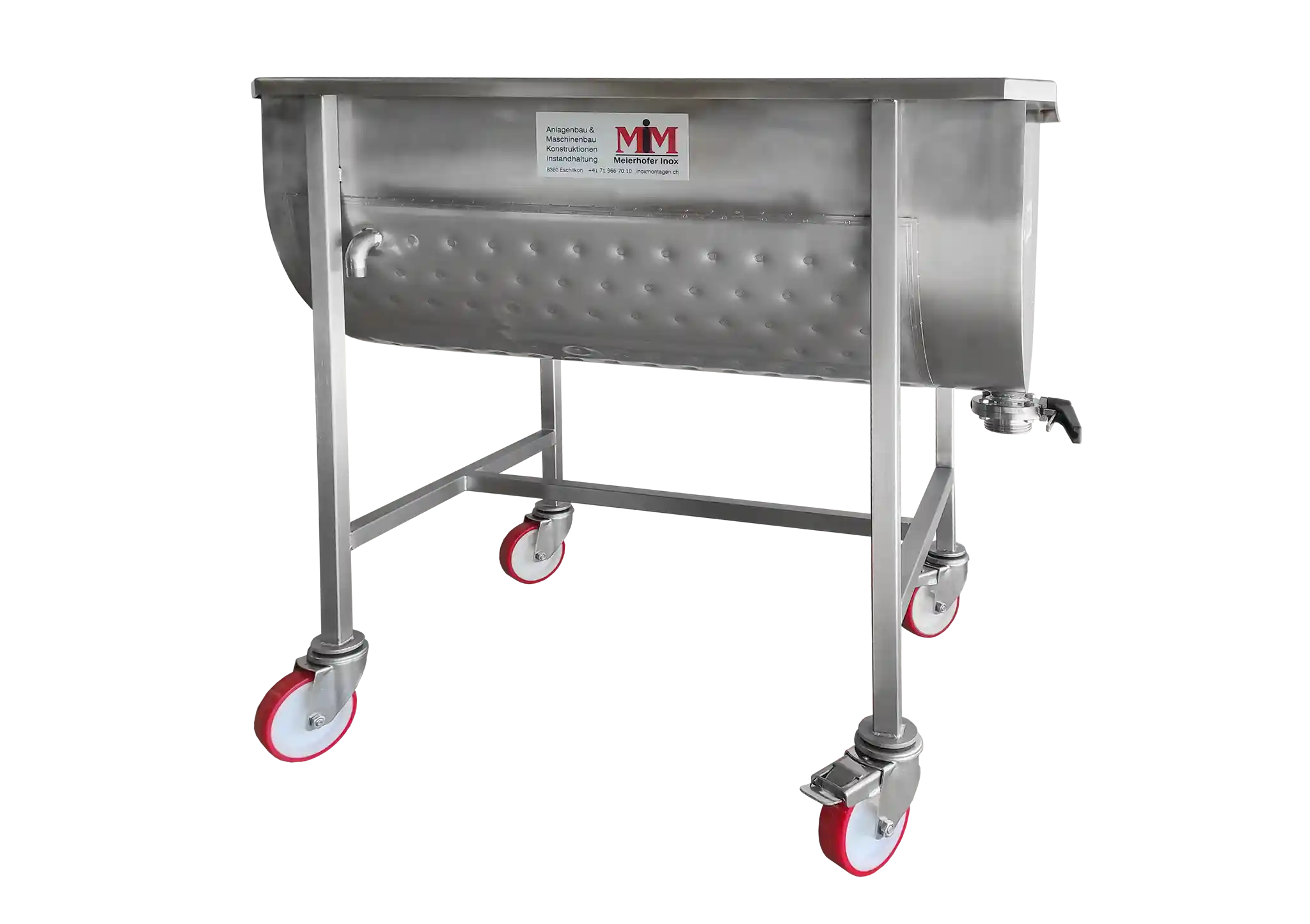 Die Quarkwannen sind ideal für die Verarbeitung von 100 bis 500 Liter Milch pro Charge. Sie sind mobil dank Ihrer Räder und können bequem an den Verarbeitungsort transportiert werden.